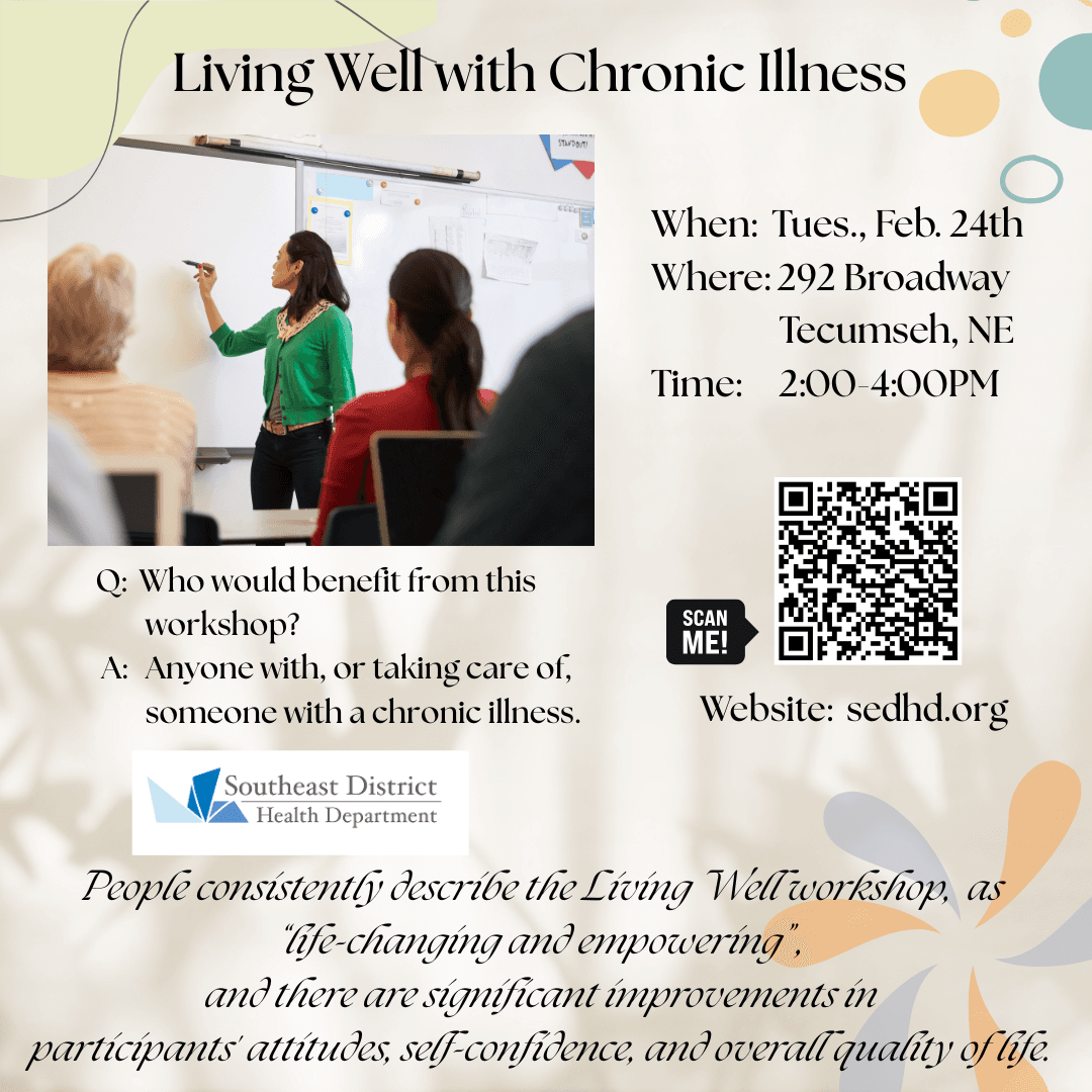 Living Well with Chronic Disease is an evidence-based self-management workshop originally developed at Stanford University.